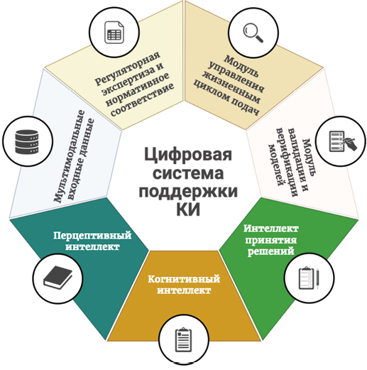 Материалы и методы. Проведён обзор литературы и обобщение данных из актуальных научных публикаций, регуляторных документов и методических рекомендаций, посвящённых использованию ИИ в КИ в период с 01.09.2019 по 28.08.2025 гг. В качестве основы для структурирования материала использована концепция многоуровневой архитектуры ИИ, включающая перцептивный, когнитивный и решающий интеллект.